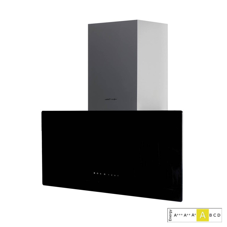 Campana vertical decorativa de Cata, diseñada en colaboración con los hermanos Roca. Destaca su elegante diseño con acabado en cristal negro y su panel táctil con temporizador de desconexión automática e indicador de limpieza de los filtros, que podrás lavar en el lavavajillas para un mantenimiento óptimo. Su motor es silencioso y alcanza una extracción máxima de 850m3/h. Medidas 80x29x75,5/107cm.