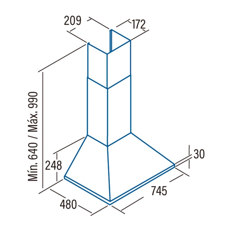 Campana extractora decorativa, tipo trapezoidal, de la marca Cata. Destaca su elegante diseño en forma de chimenea, con acabado en acero inoxidable y panel de control con teclas de fácil acceso. Su motor alcanza una extracción máxima de 595m3/h, además de contar con dos filtros antigrasa para conseguir la máxima absorción de humos, vapores y partículas de grasa. Medidas 74,5x48x64/990cm.