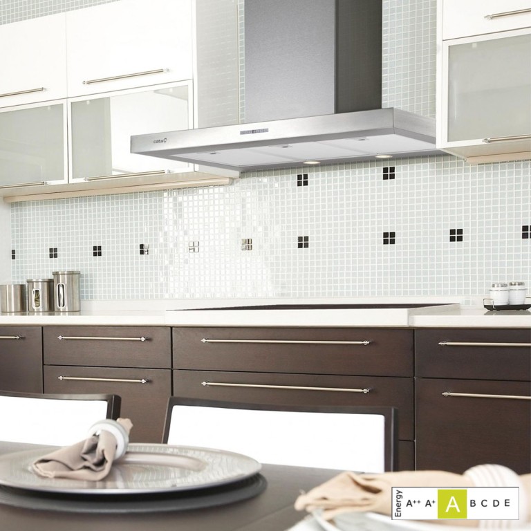 Campana extractora, tipo cajón, de la marca Cata. Destaca su elegante diseño con acabado en acero inoxidable y panel de control electrónico donde podemos programar el tiempo que estará en funcionamiento la extracción de aire, con desconexión automática e indicador de limpieza de filtro para un mantenimiento óptimo. Su motor es silencioso y alcanza una extracción máxima de 850m3/h. Medidas 90x50,5x63,5/103,5cm.